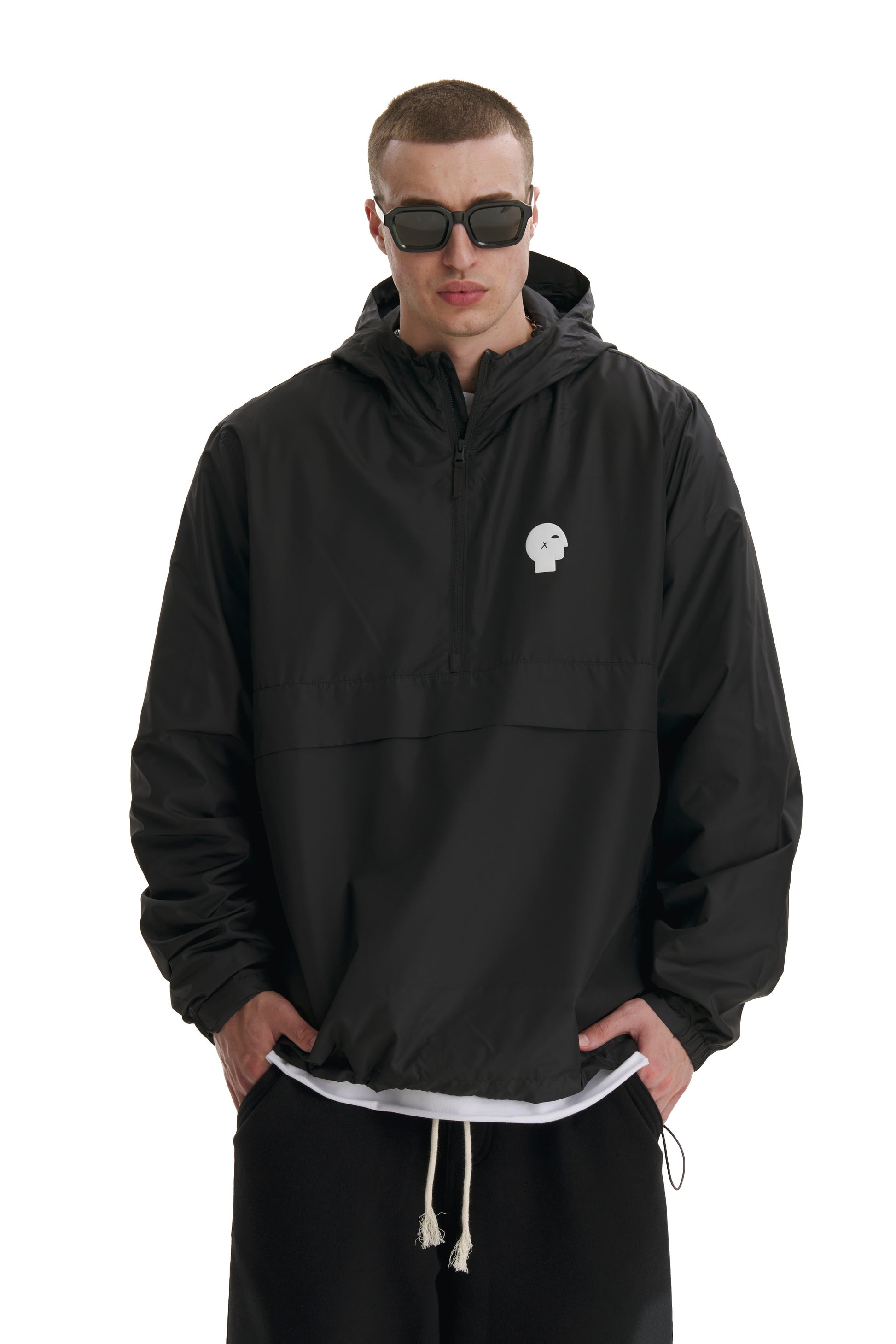 • Double layered hood with adjustable plastic stopper and elastic cord on inside