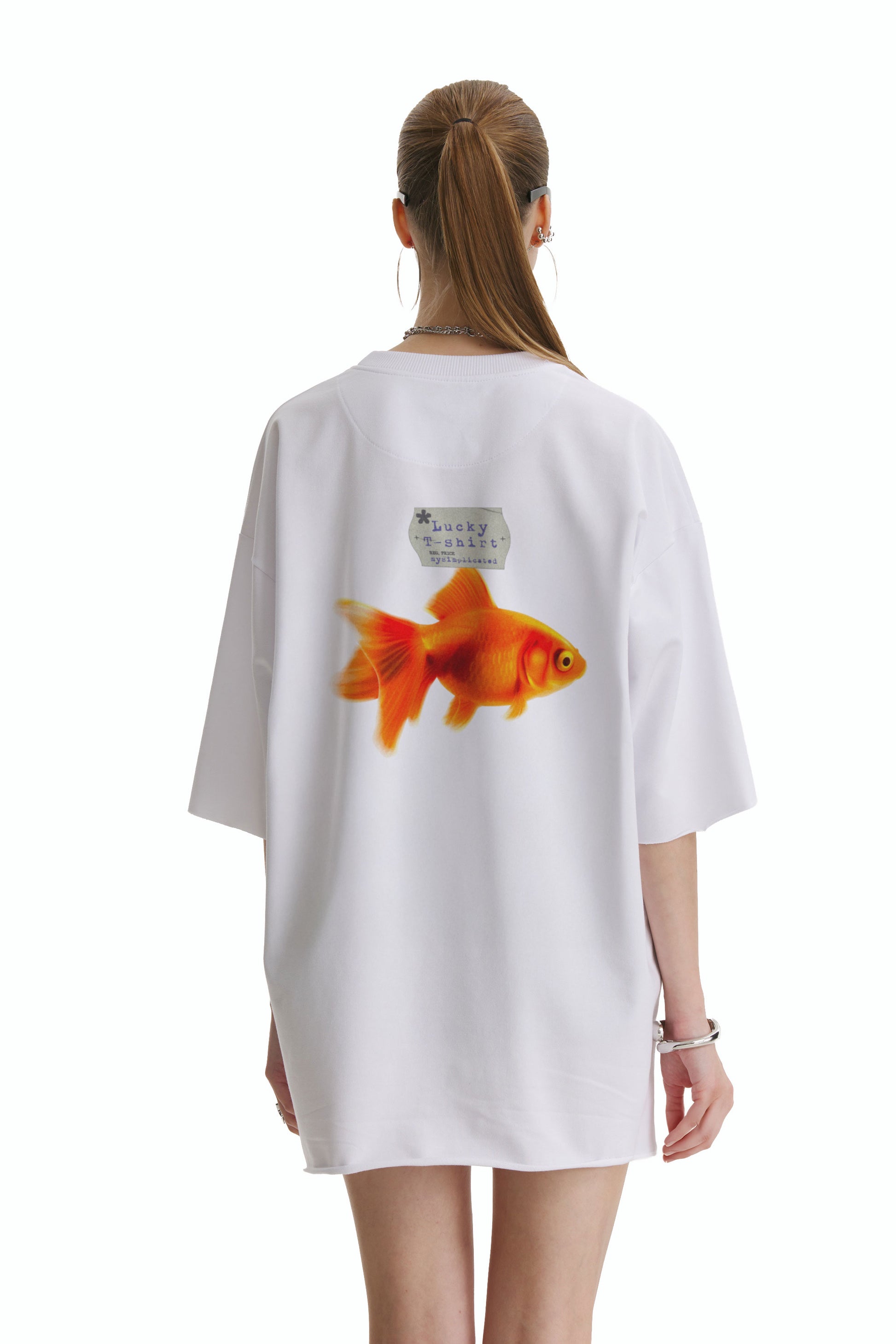 Luźna bawełniana biała koszulka Lucky